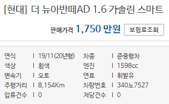 대전 더뉴아반떼AD 중고차 판매중 8천키로 실주행 신차급